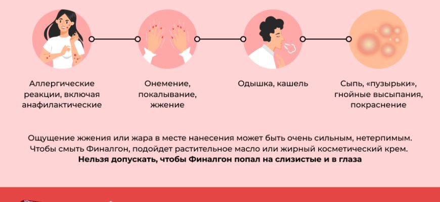 Однако есть и более серьезные побочные эффекты, которые могут возникнуть при применении Финалгона. Первым из них является аллергическая реакция на составляющие препарата. Если у вас возникла аллергическая реакция, такую как зуд, сыпь, отек или затруднение дыхания, немедленно прекратите использование Финалгона и обратитесь к врачу.