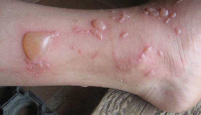 - Пропитанные водой волдыри образуются на коже под воздействием большого количества сока и интенсивного солнечного света.