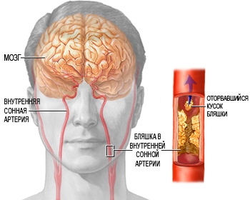 - Бляшка может отслоиться от стенки артерии. По мере того, как кровь течет, она попадает в один из более мелких сосудов головного мозга, блокируя его.